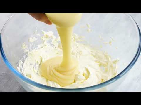 Die gezuckerte Kondensmilch nach und nach zum Frischkäse geben und auf mittlerer Stufe weiterrühren, bis eine glatte, cremige Masse entsteht.