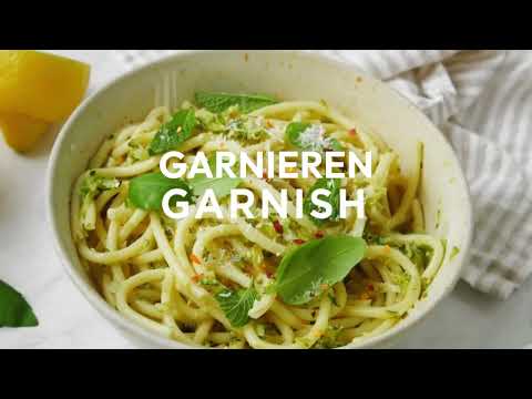 - Verwende einen Spiralschneider oder schneide die Zucchini in feine Streifen, um die perfekte Textur für deine Zucchini Pasta zu erhalten. So gelingt das Gericht auch ohne spezielles Werkzeug.